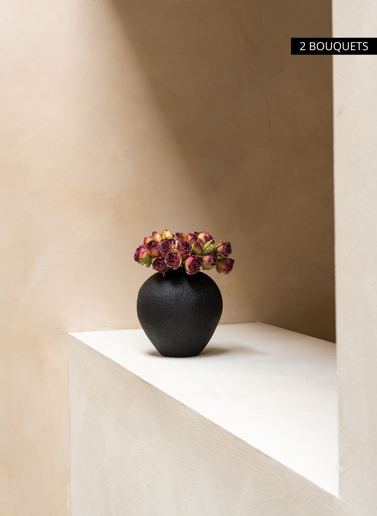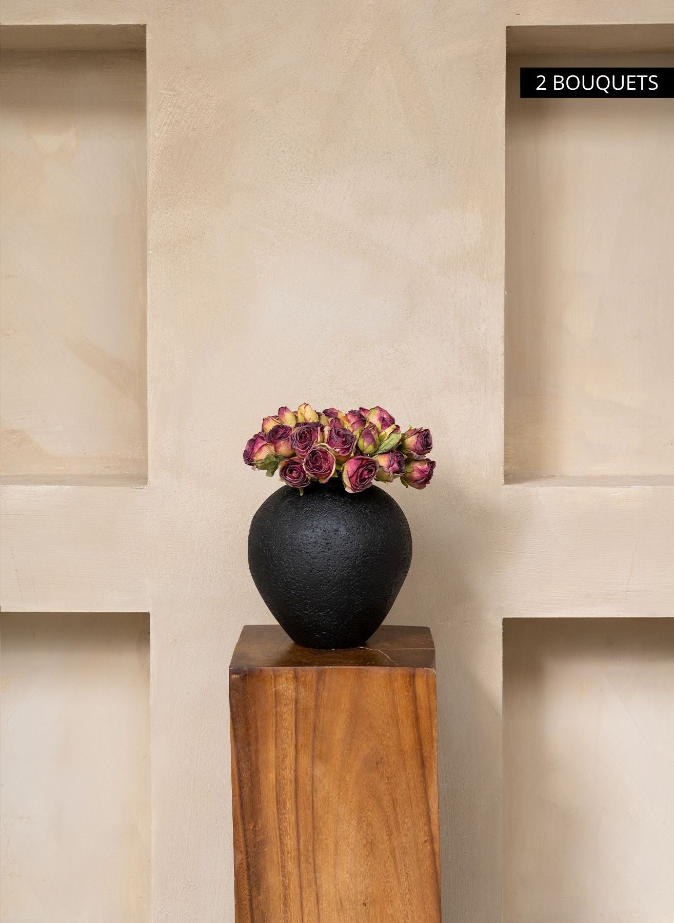 Un bouquet contient 20 délicates mini-roses en pleine floraison. Associez 2 bouquets pour obtenir 40 roses et une allure riche et opulente dans votre intérieur.